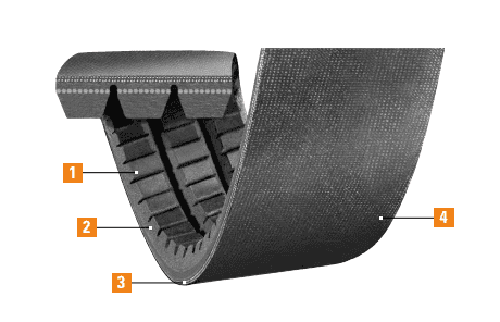 2. Raw-Edge Sidewalls boost belt performance and efficiency by gripping the pulley with tenacious grip strength and higher coefficient of friction.
